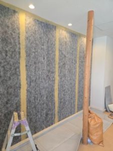 プラスターボード等の下地にアイアンシートを貼付し、さらにその上から壁紙を貼付します。