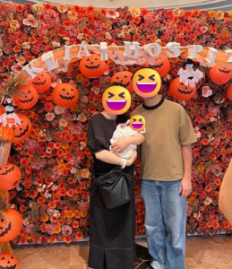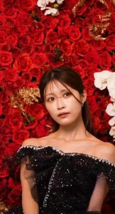 フラワーウォールの前で撮影され、